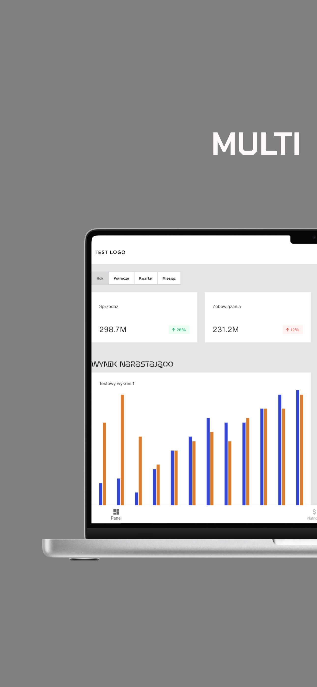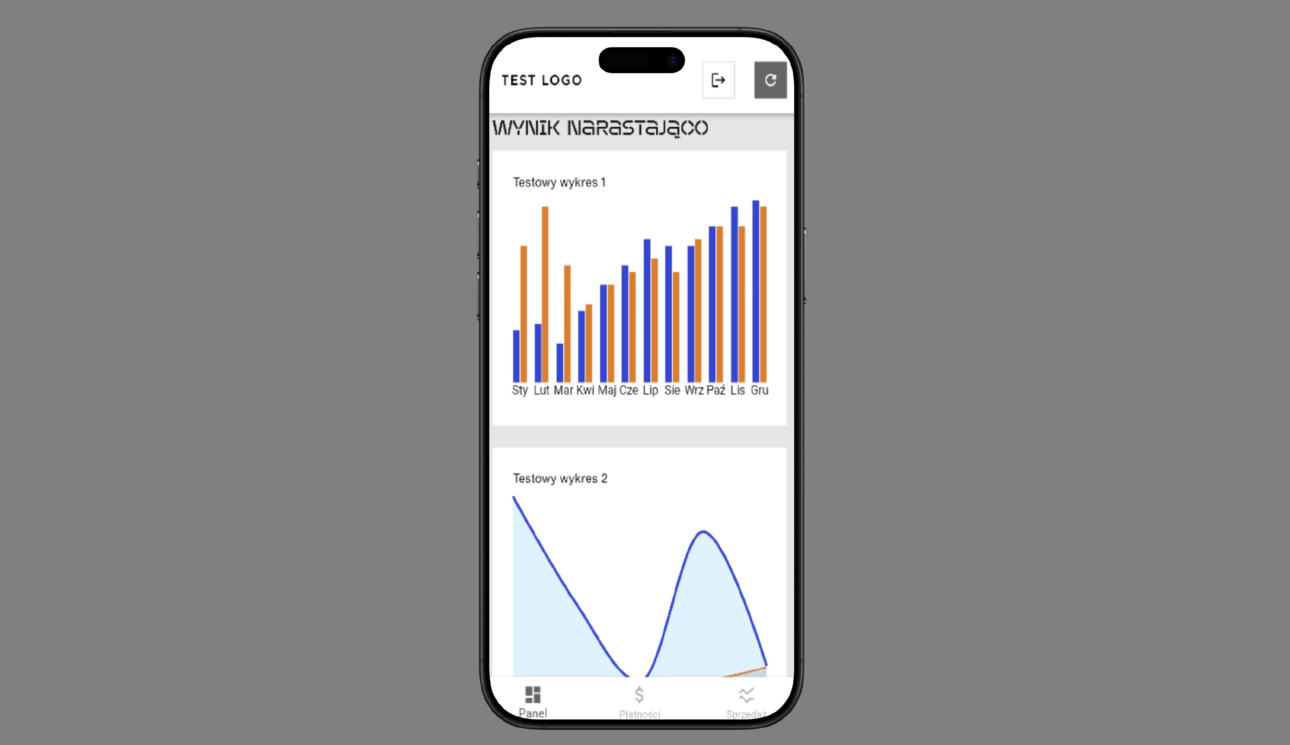 The app solves the problem of creating clear, visually appealing views for presenting financial results—all in one place. It supports API integration, allowing data to be updated server-side without the need to make changes on the frontend. Users can explore financial results through charts, sorted containers, sliders, and, of course, raw numbers. The app includes login and logout functionality, as well as real-time data refresh. In addition to the mobile version, a web version is also available.